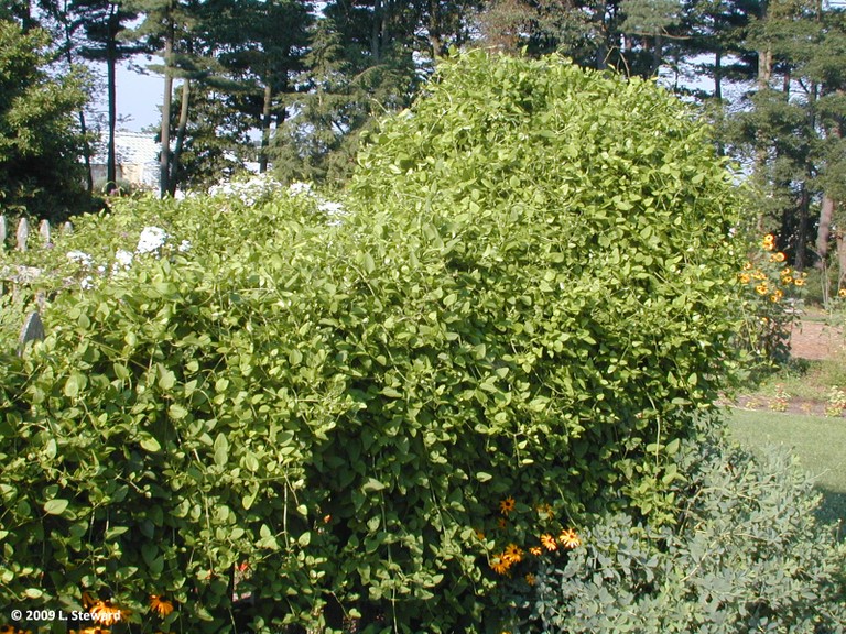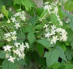 Native vinewith scented white flowers in late summer into fall. Good screen plant on a chain link fence as long as it doesn't touch structures.
