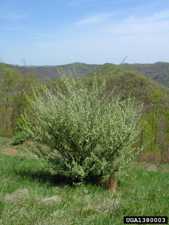 Has thorns-suckers readily. Due to prolific production of red fruit that attracts birds and is spread by birds, this plant is outlawed in several states. Was planted along many interstate highways.