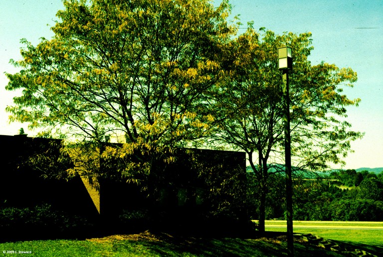 Branched thorns on species-landscape forms do not have thorns-many large seed pods on species.