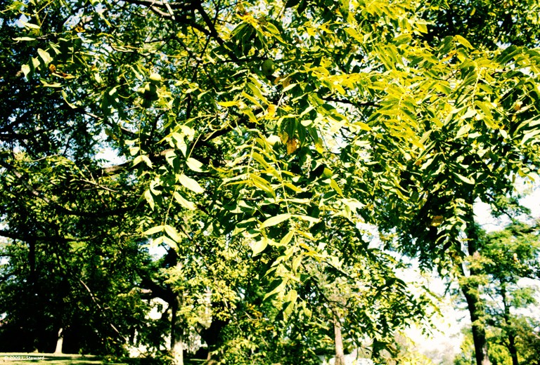 Strongest source of the allepathic chemical, Jugalone, which injures or kills members of Solanaceae and Ericaceae. Plentiful nuts with not seamed husks which will stain anything touching them. Outstanding dark furniture lumber source. Fall web worm problematic.