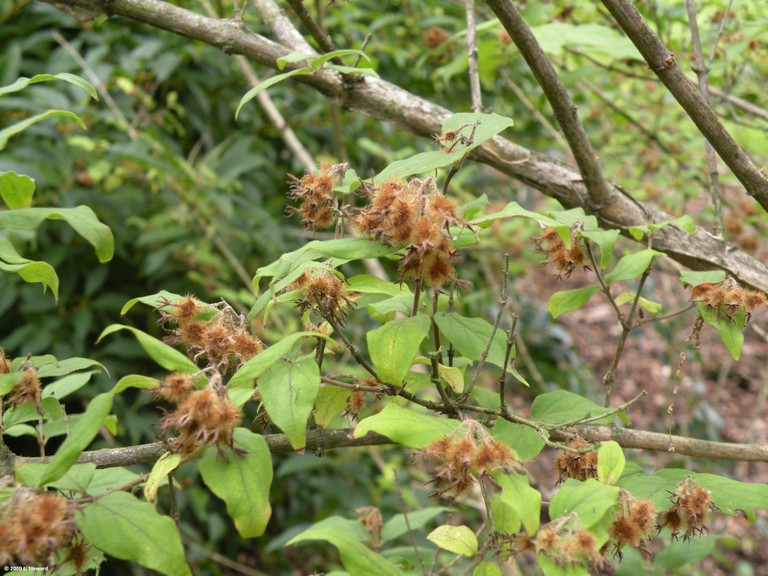 Showy pink flowers, fuzzy seeds that baby chicks with their feet up.