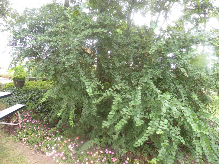 White axilliary flowers. Long arching branches making it a sprawling shrub. Shrub used for informal landscapes.