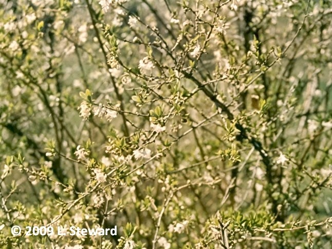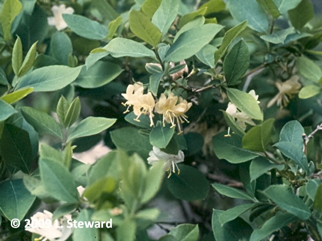 White fragrant flowers. Invasive shrub as seed spread by birds.