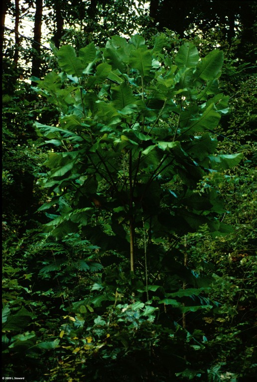 Largest foliage of native magnolias. Large gray, pubescent buds.