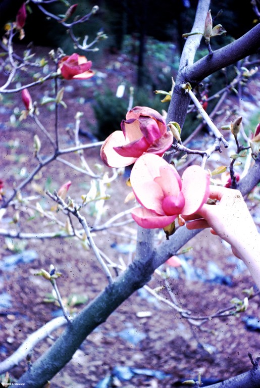Very similar to saucer magnolia flowers. Flowers are of darker colors.