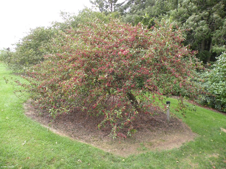 Older cultivars loose leaves early due to apple scab-fragrant flowers in spring.