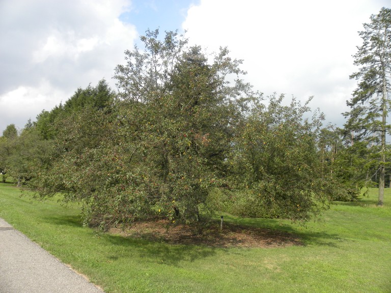 Older cultivars loose leaves early due to apple scab. Fragrant flowers in spring.