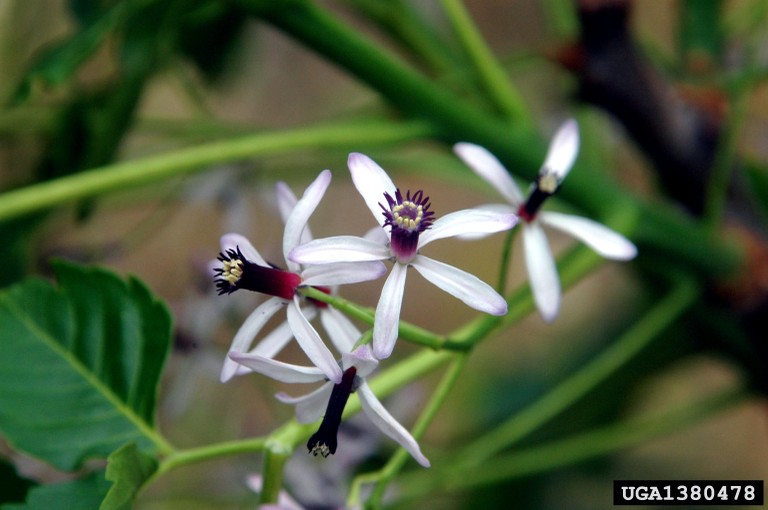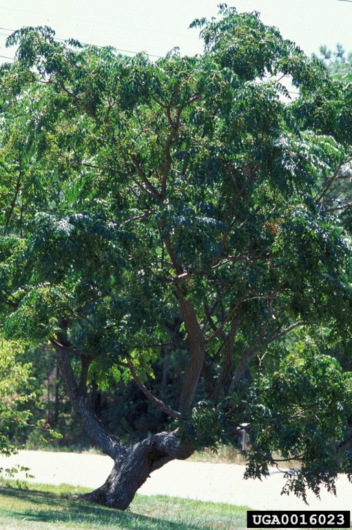 Imported, invasive tree throughout the southern states. Unusual small blue flower resulting with gelatinous round green fruit. Gets stem canker readily causing tree to become short and "bushy".
