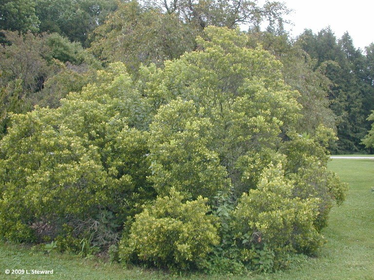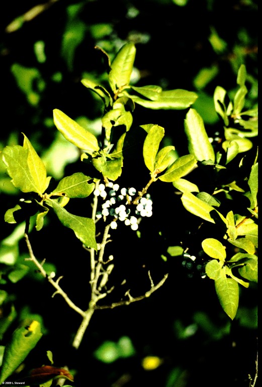 Sometimes individual plants will be evergreen-can be found growing in swamps-waxy blue fruit on stems.