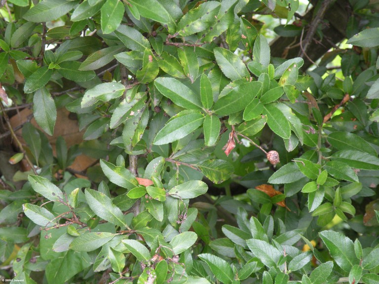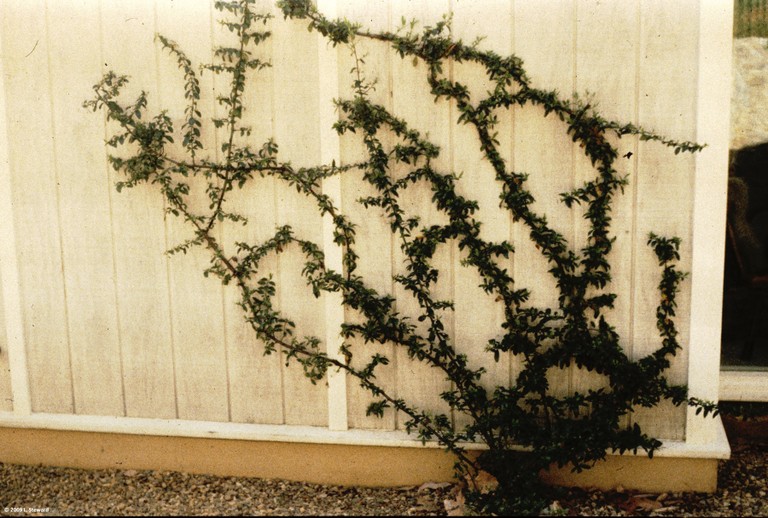 Red, orange and yellow fruit that are susceptible to apple scab turning them black-thorns at ends of all branches-these thorns burn when broken off under the skin.