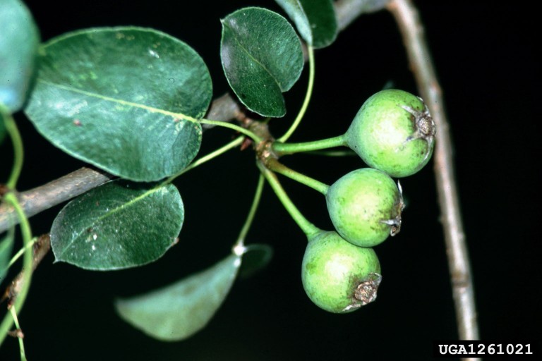 Fruiting edible pear.