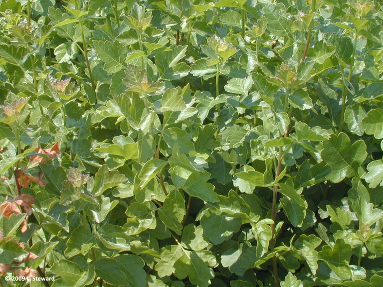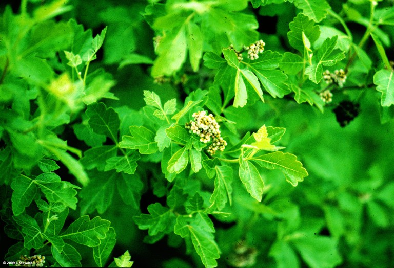 Three leaflet leaf-pungent scent-salt tolerant-red fall color.