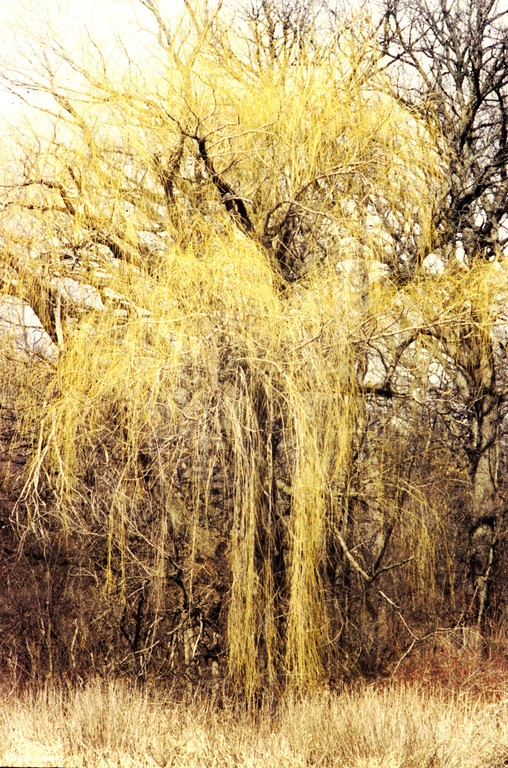Large native northern willow. Only forms of this tree weep. Very yellow new growth in late winter to early spring.