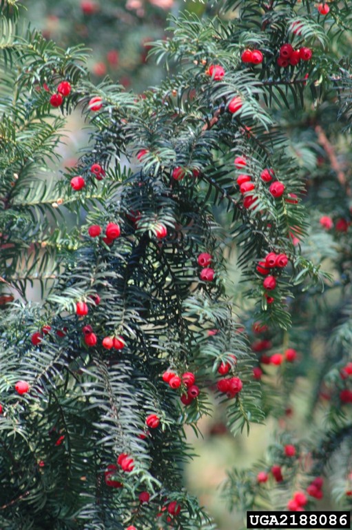 Red aril fruit-all of the plant except for the fruit is poisonous including the seed-common landscape evergreen in northern region.