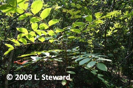 Causes skin rashes in most individuals-red to yellow fall color-white fruit clusters in leaf axils-pinnately compound leaves with 7 to 11 leaflets. Always found growing in wetlands or swamps.